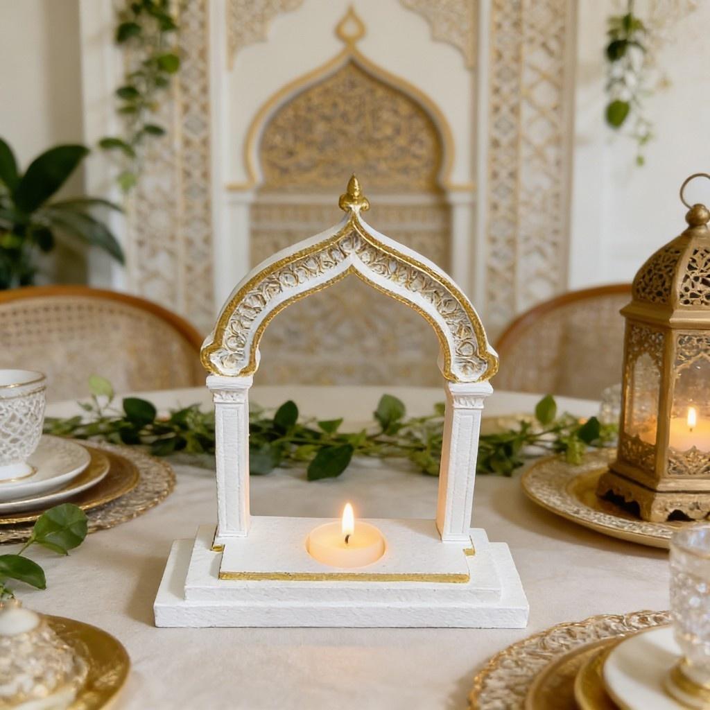 Ramadan Decoration Arch Candle Holder Islamic Style White & Gold Tealight Stand for Home Table Eid Mubarak Festival Decorations