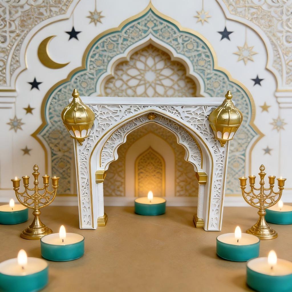 Ramadan Decoration Eid Mubarak Islamic Arch Ornament Candle Holder Arabic Style Home Decor for Muslim Festival Party Supplies