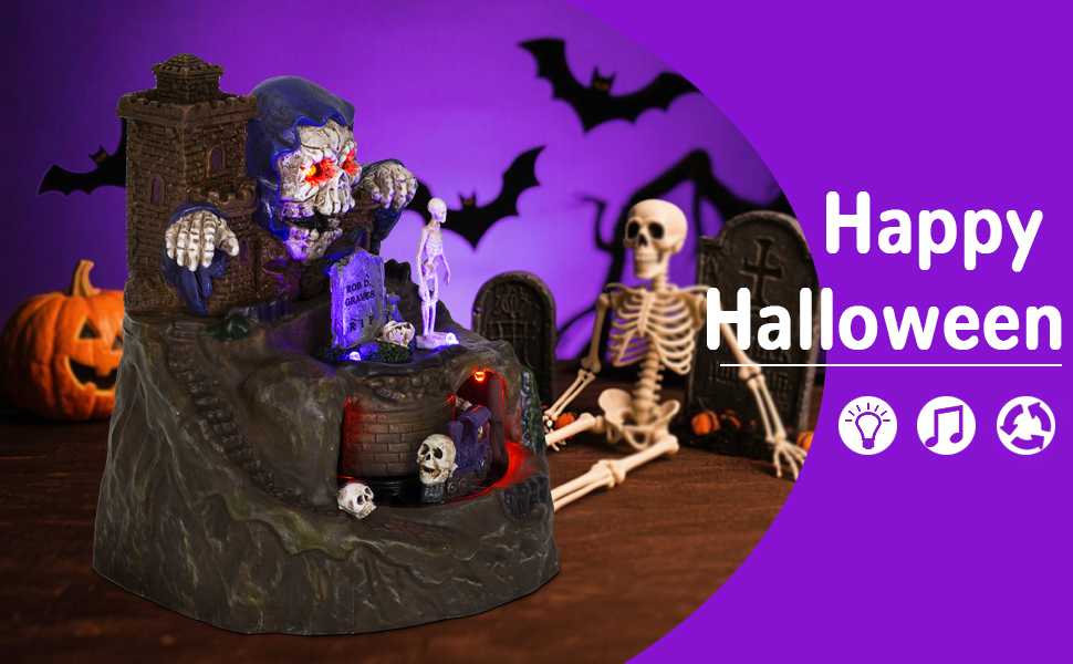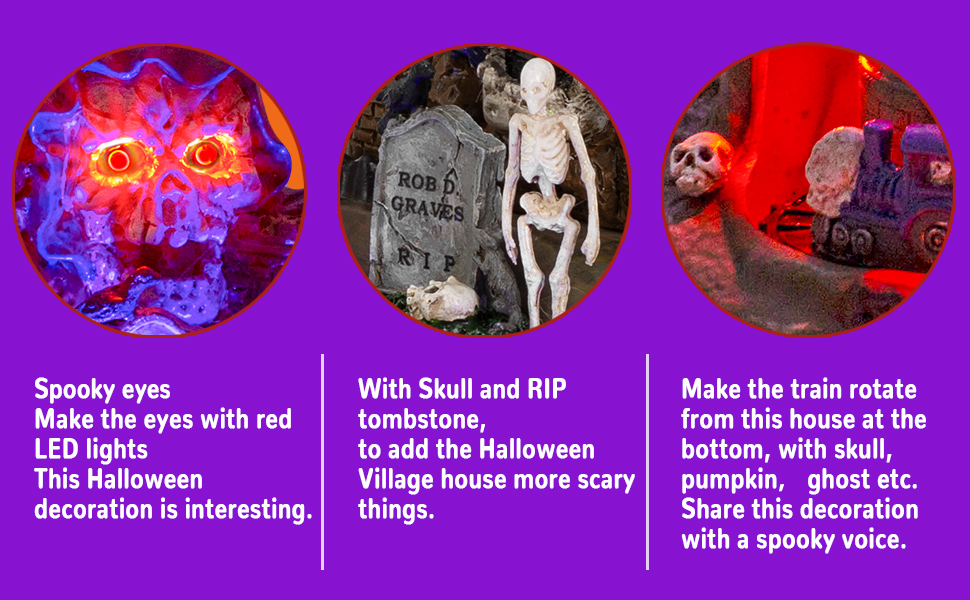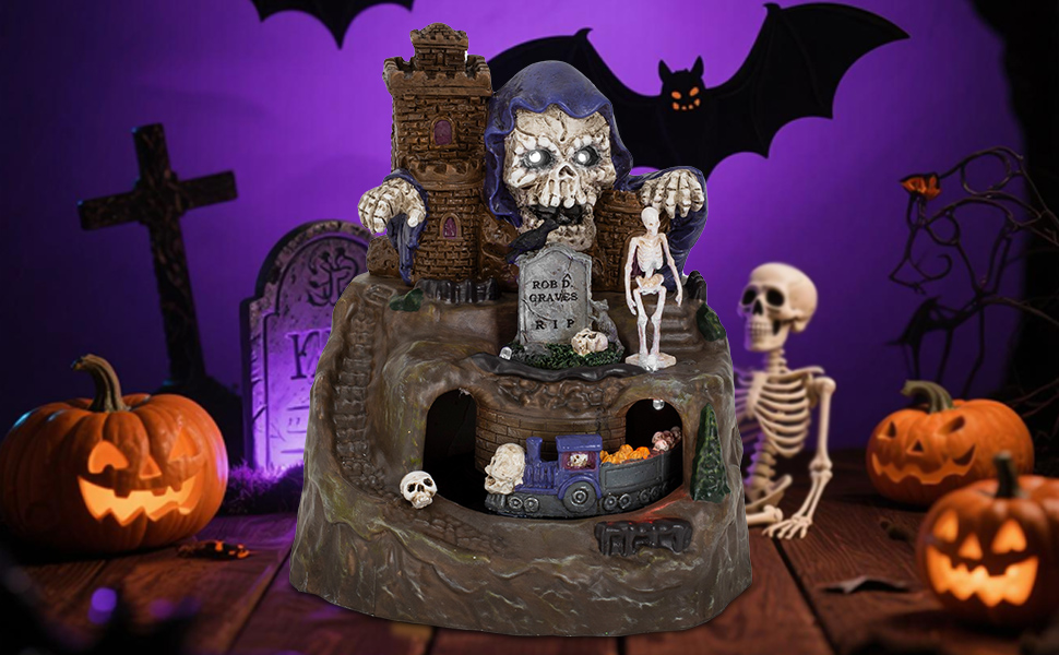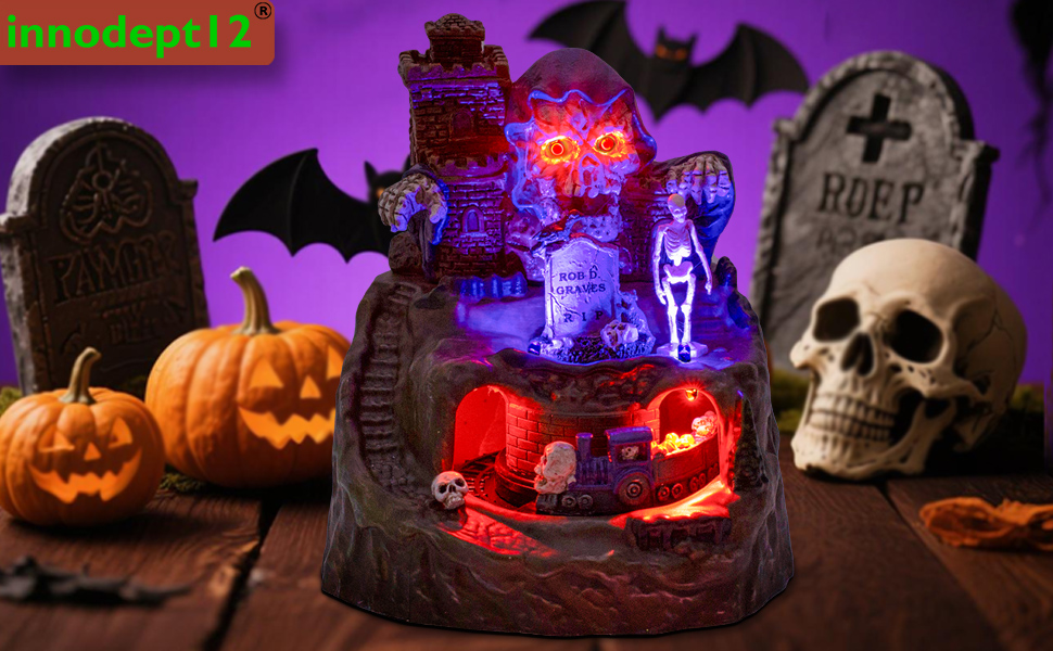 Musical Haunted Castle Halloween Village with Rotating Skeleton Train, innodept12, MOQ 24pcs