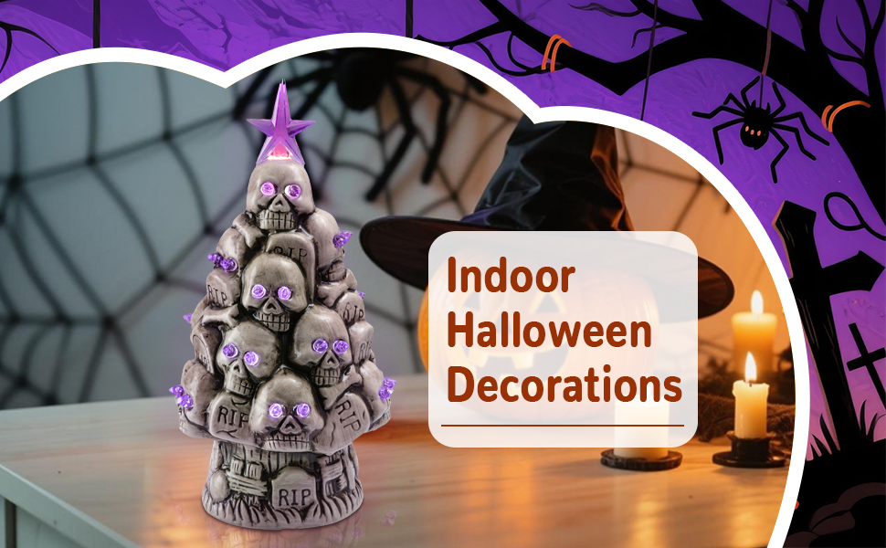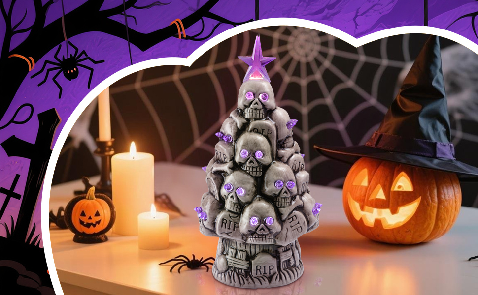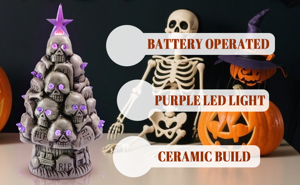 Ceramic Lighted Halloween Skull Christmas Tree with Purple LED Eyes, innodept12, MOQ 240pcs