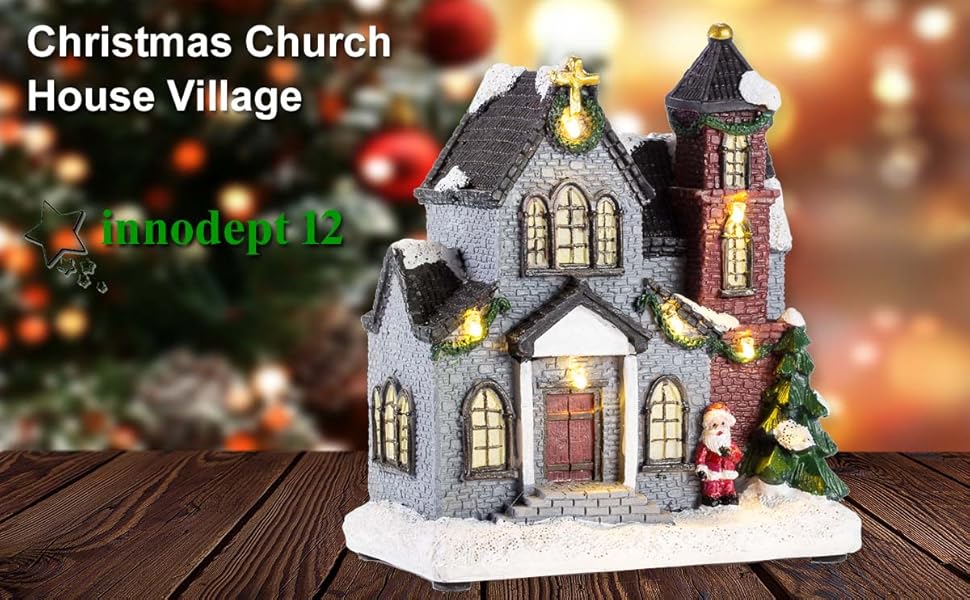 Lighted Christmas Village Church with Warm LED Glow, innodept12, MOQ 480pcs