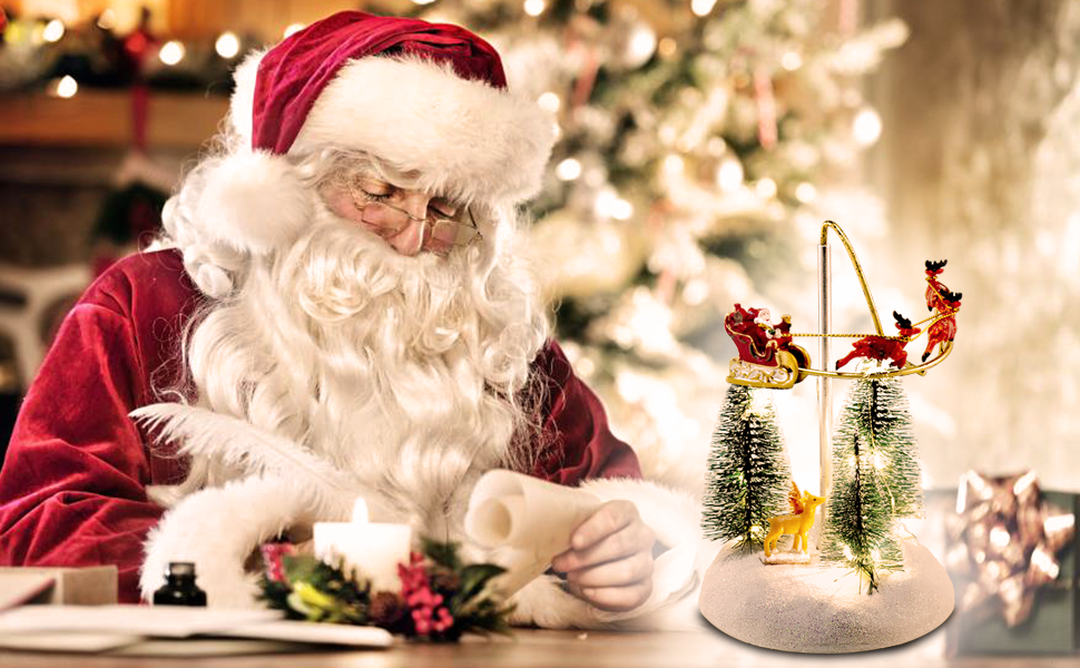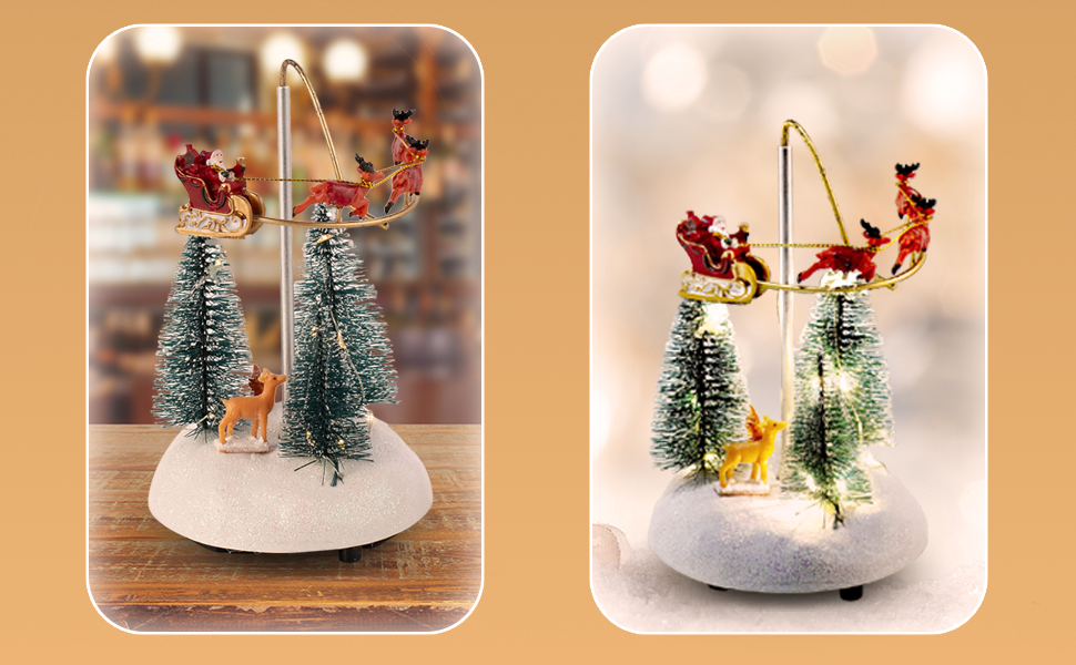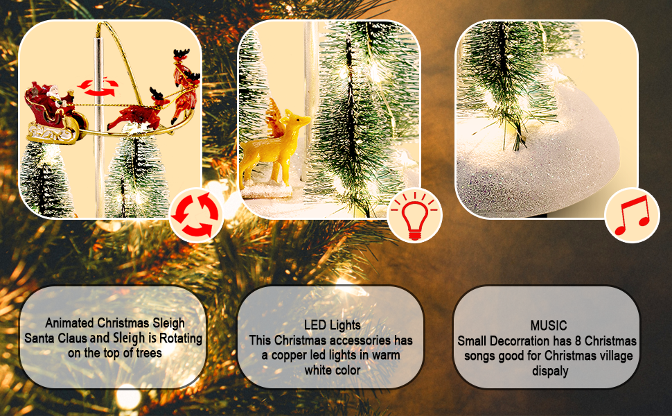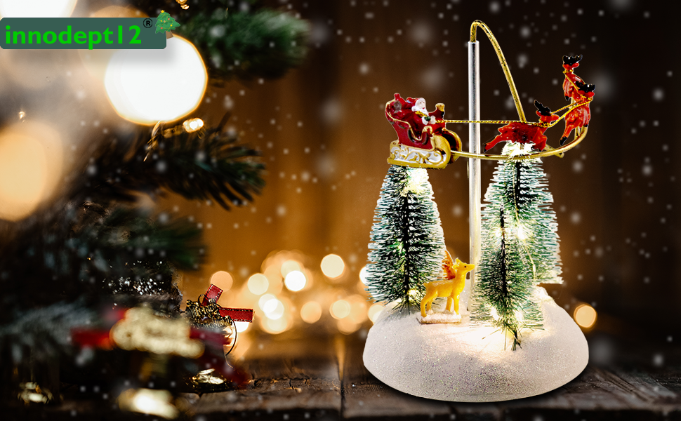 Musical Christmas Village Scene with Rotating Santa Sleigh, innodept12, MOQ 48pcs