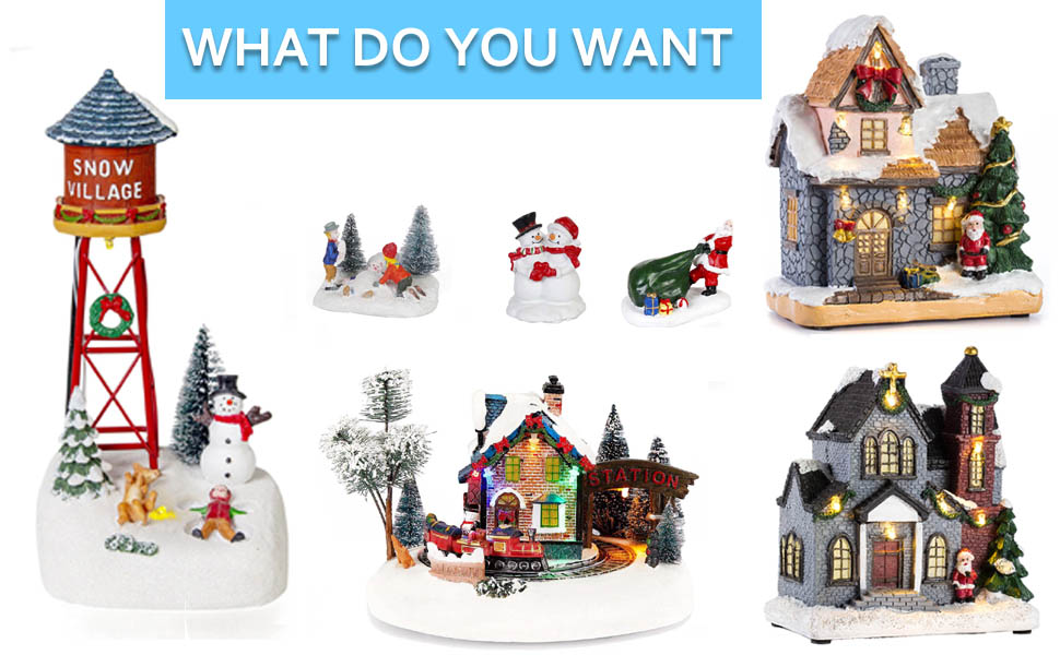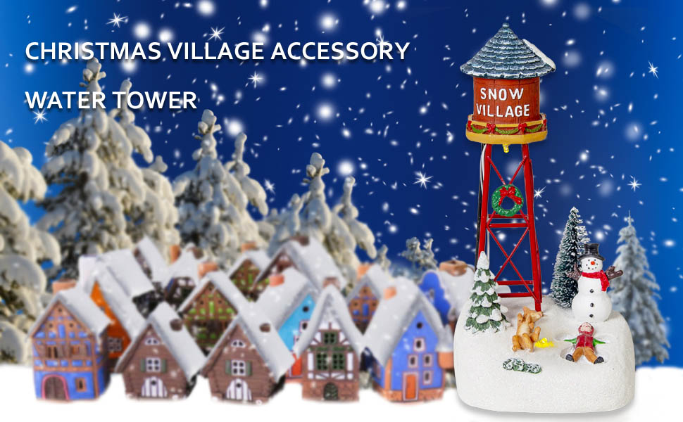 Lighted Snow Village Water Tower Christmas Decor with Snowman, innodept12, MOQ 480pcs