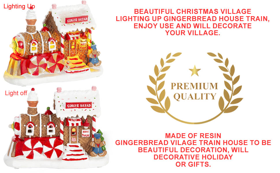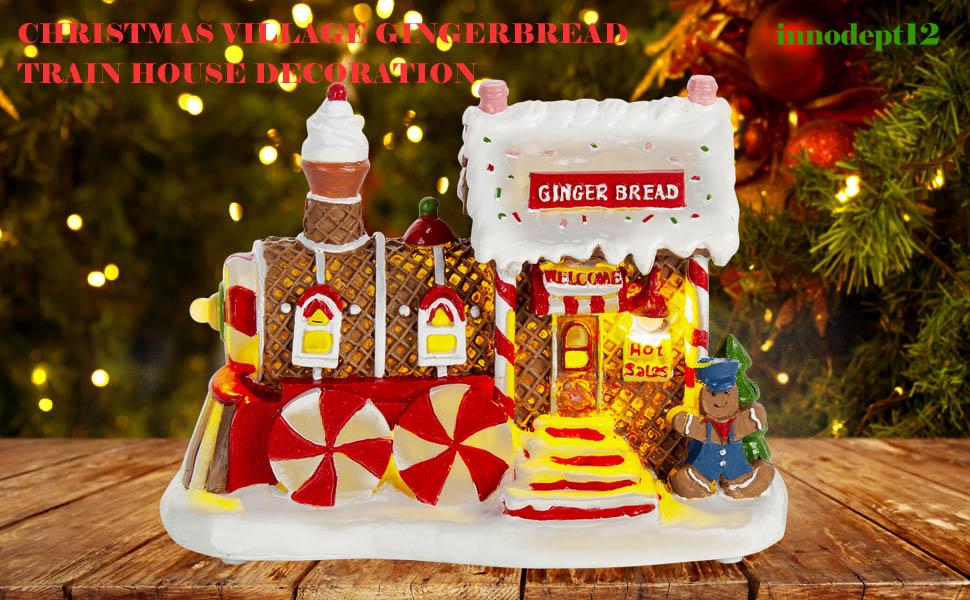 Musical & Lighted Gingerbread Train Station Christmas Village, innodept12, MOQ 48pcs